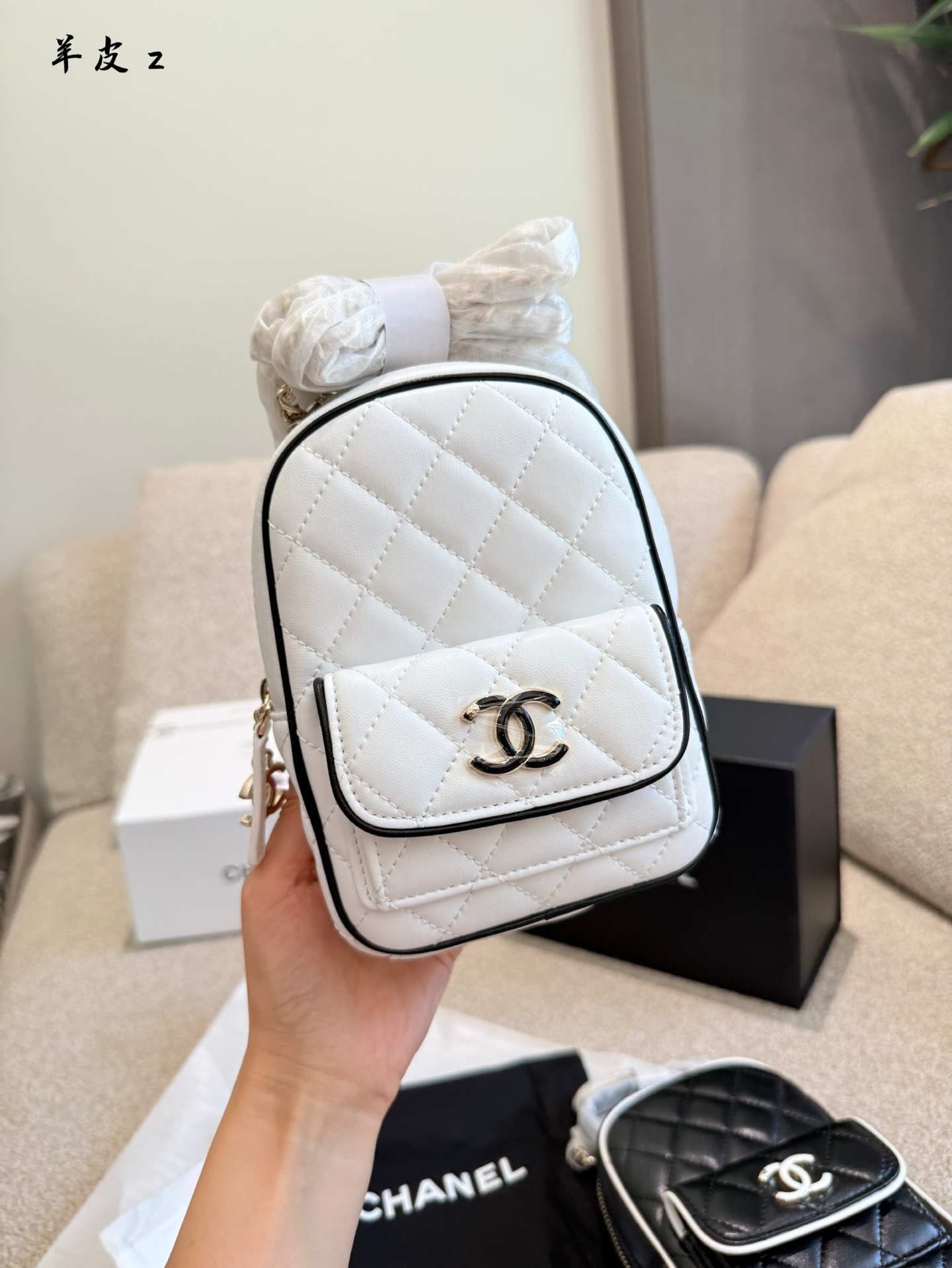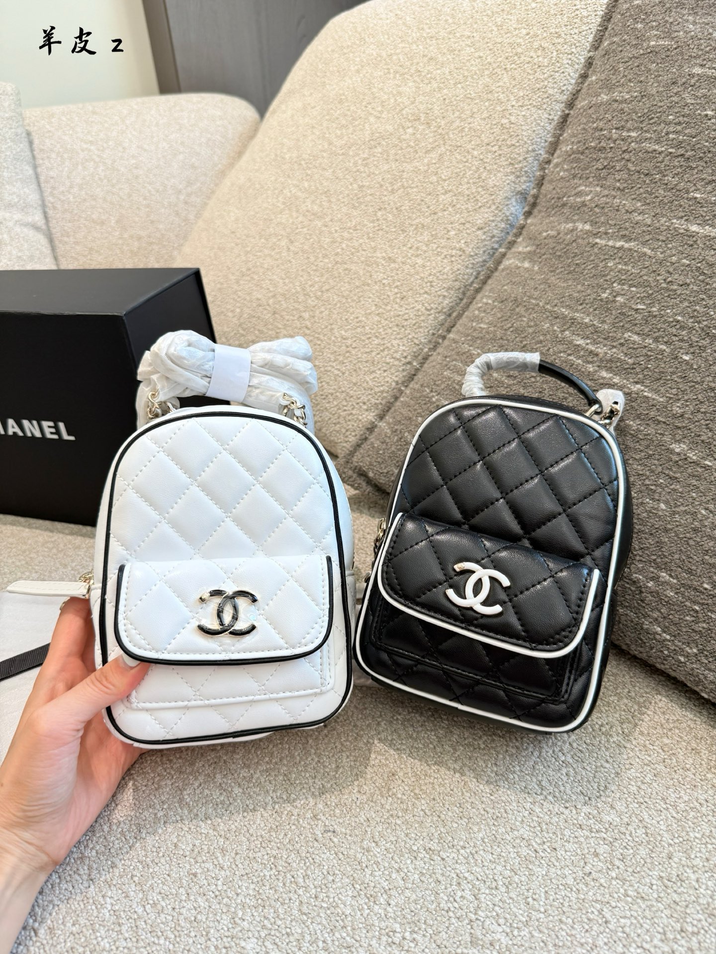 Chanel panda color multi-purpose small backpack 25p new sheepskin made with box 13×18 cute size