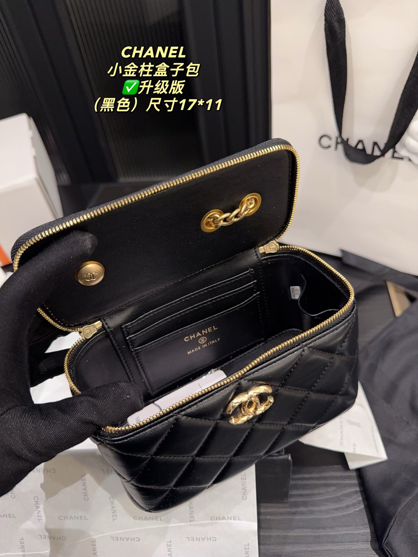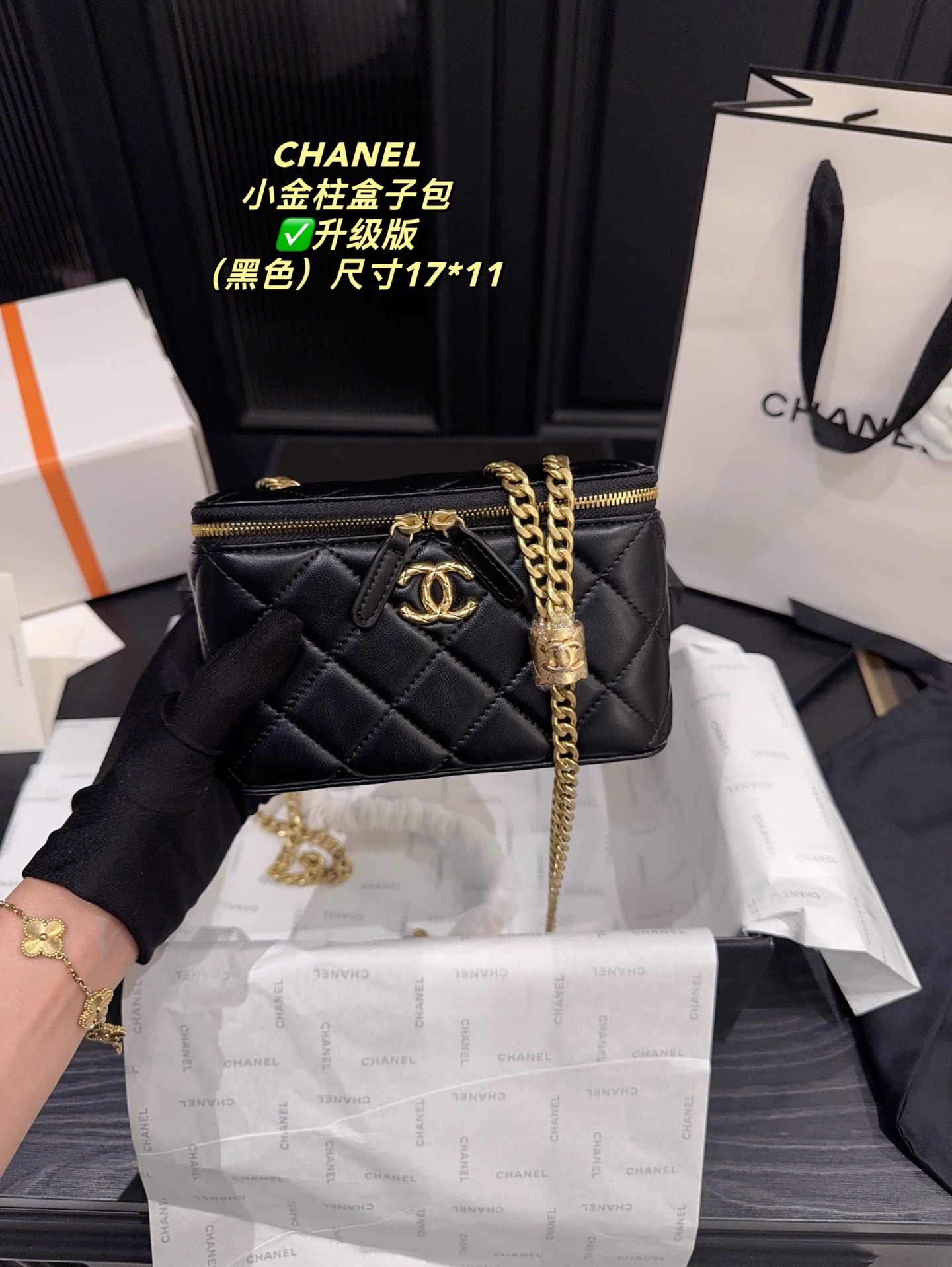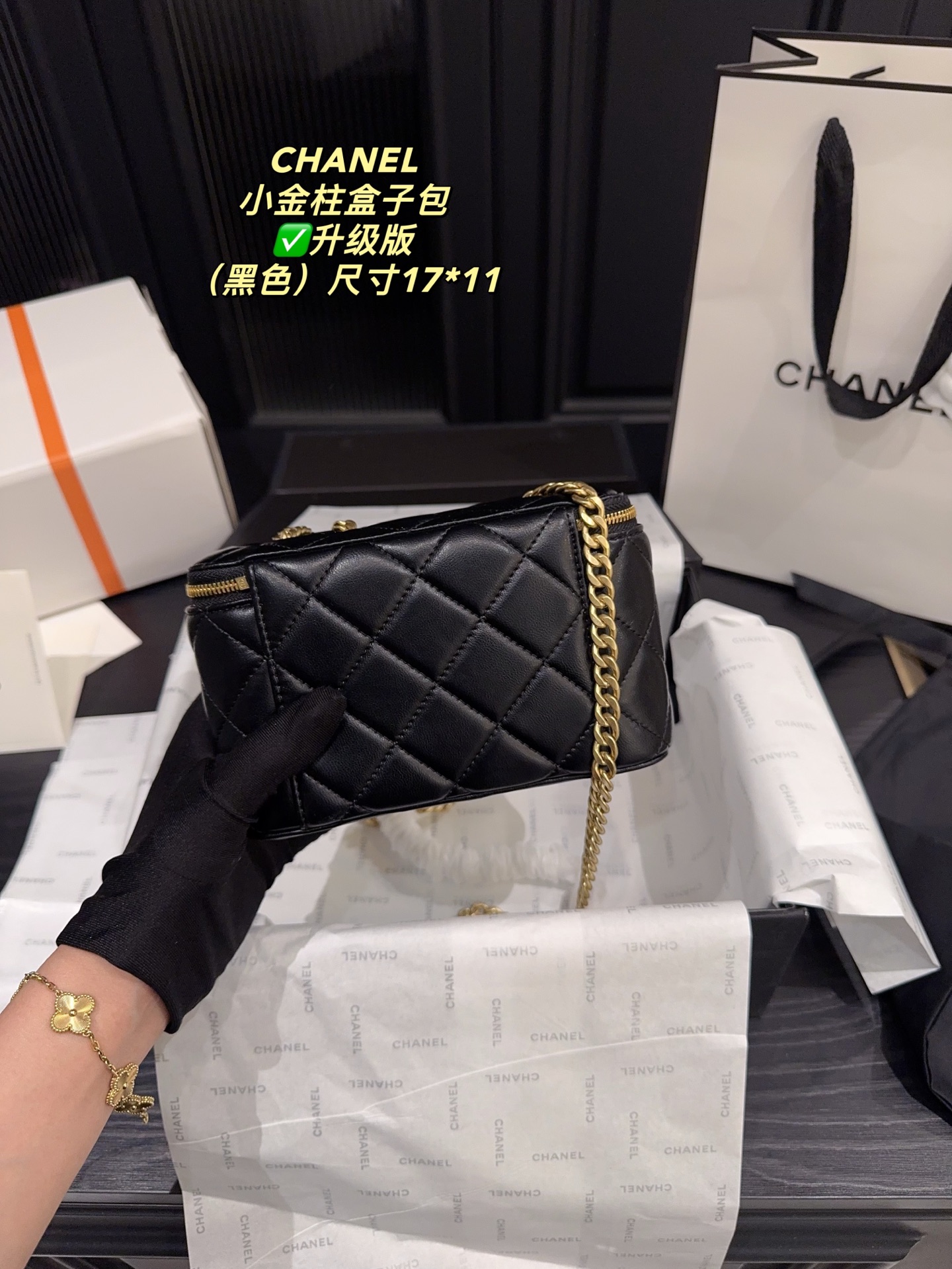 🖤The small gold column small box bag is exquisite and unique. The chain small makeup box is decent and square. Mini and cute. 〰️The small space can store small items except mobile phones. It is decorated with metal and adjustable small chain. It is super cute to carry it.