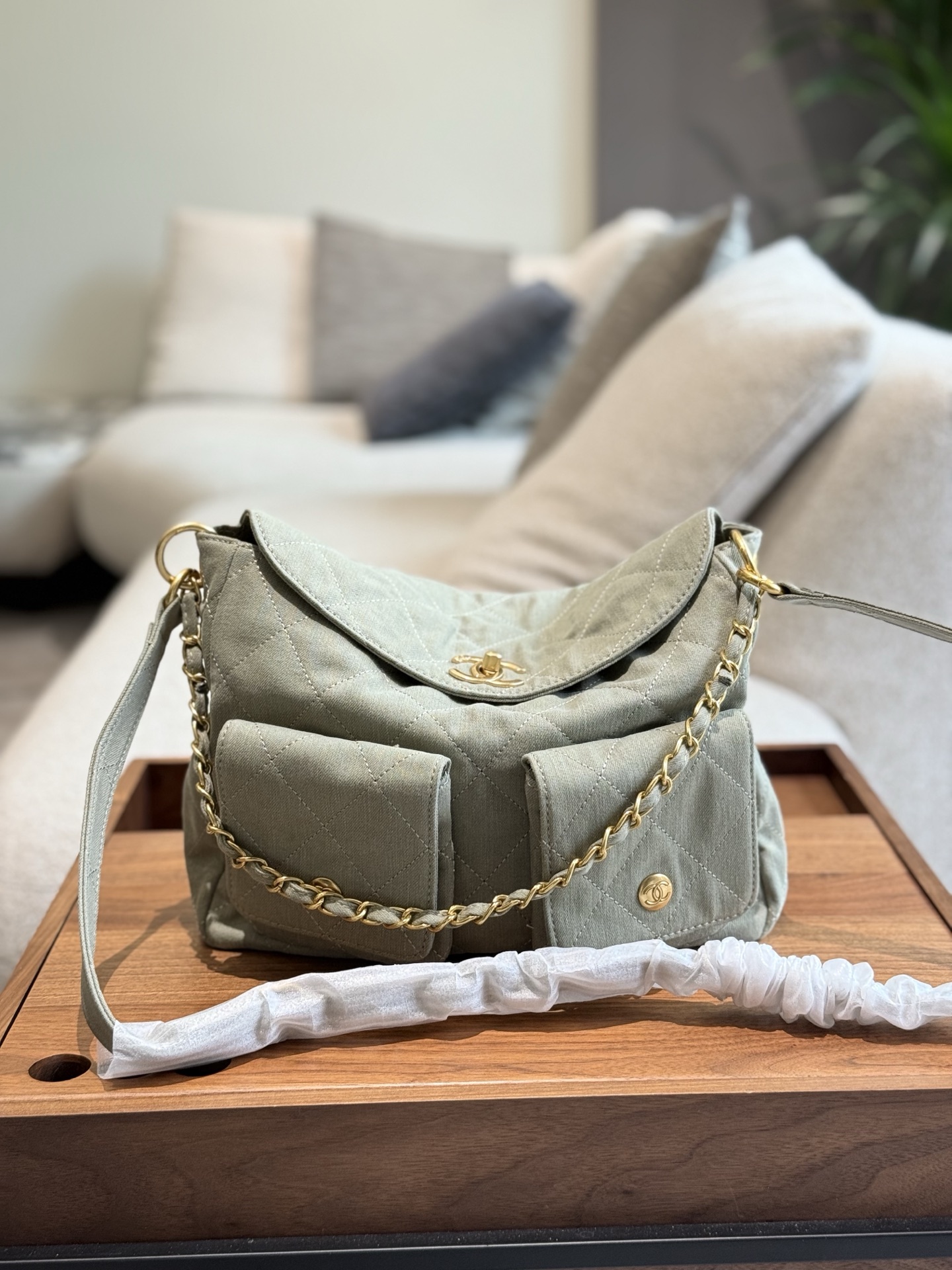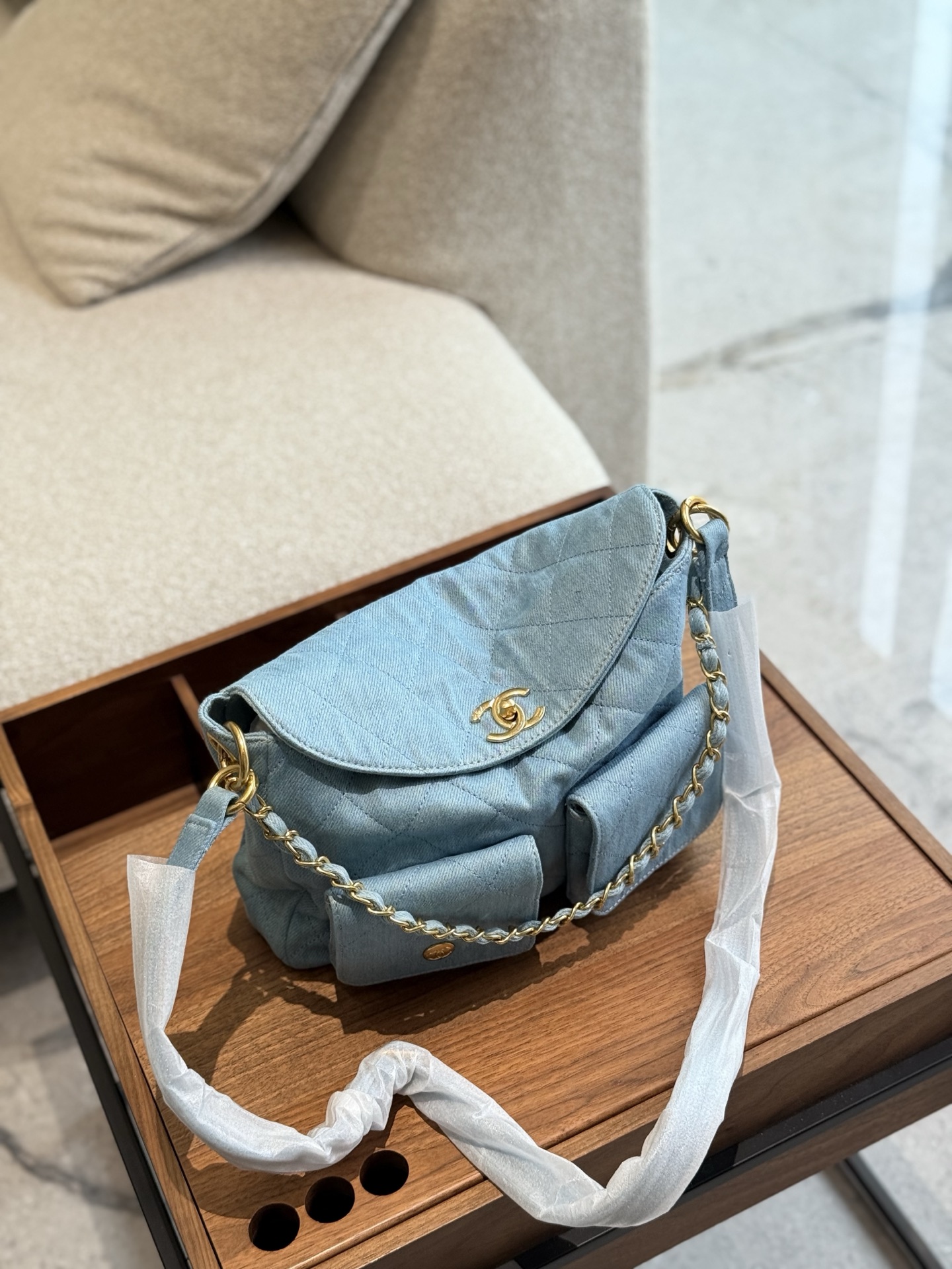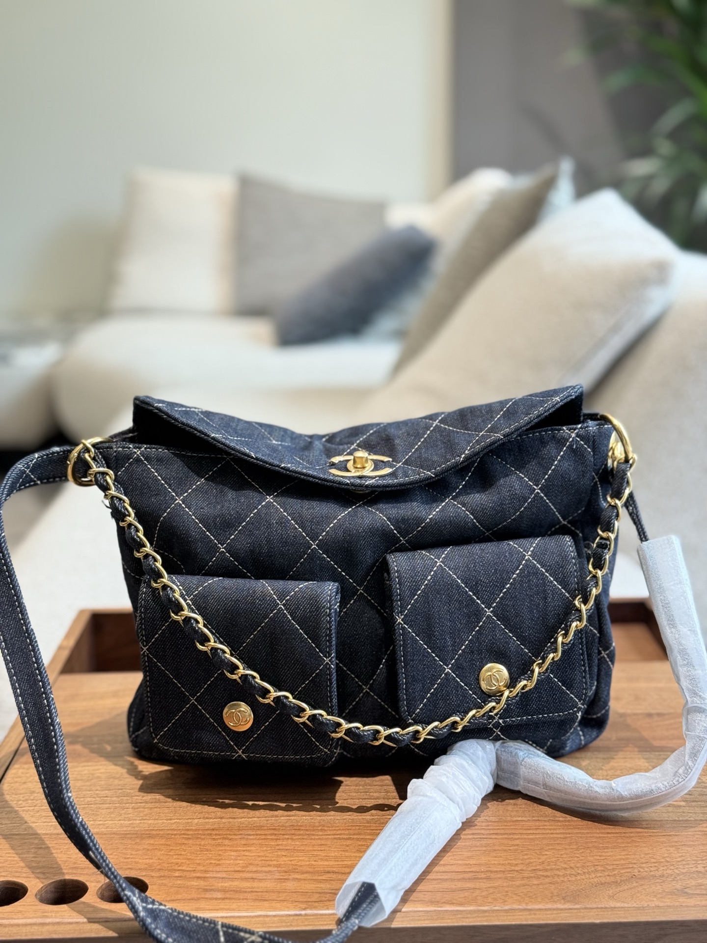 Chanel Hoho hippie bag underarm, can be worn cross-body, hand bell or underarm, shoulder strap is adjustable, large capacity, large denim! Earrings are also pretty, versatile! Four ways to carry, fragrant, size: 21.5×30.0×7.0cm