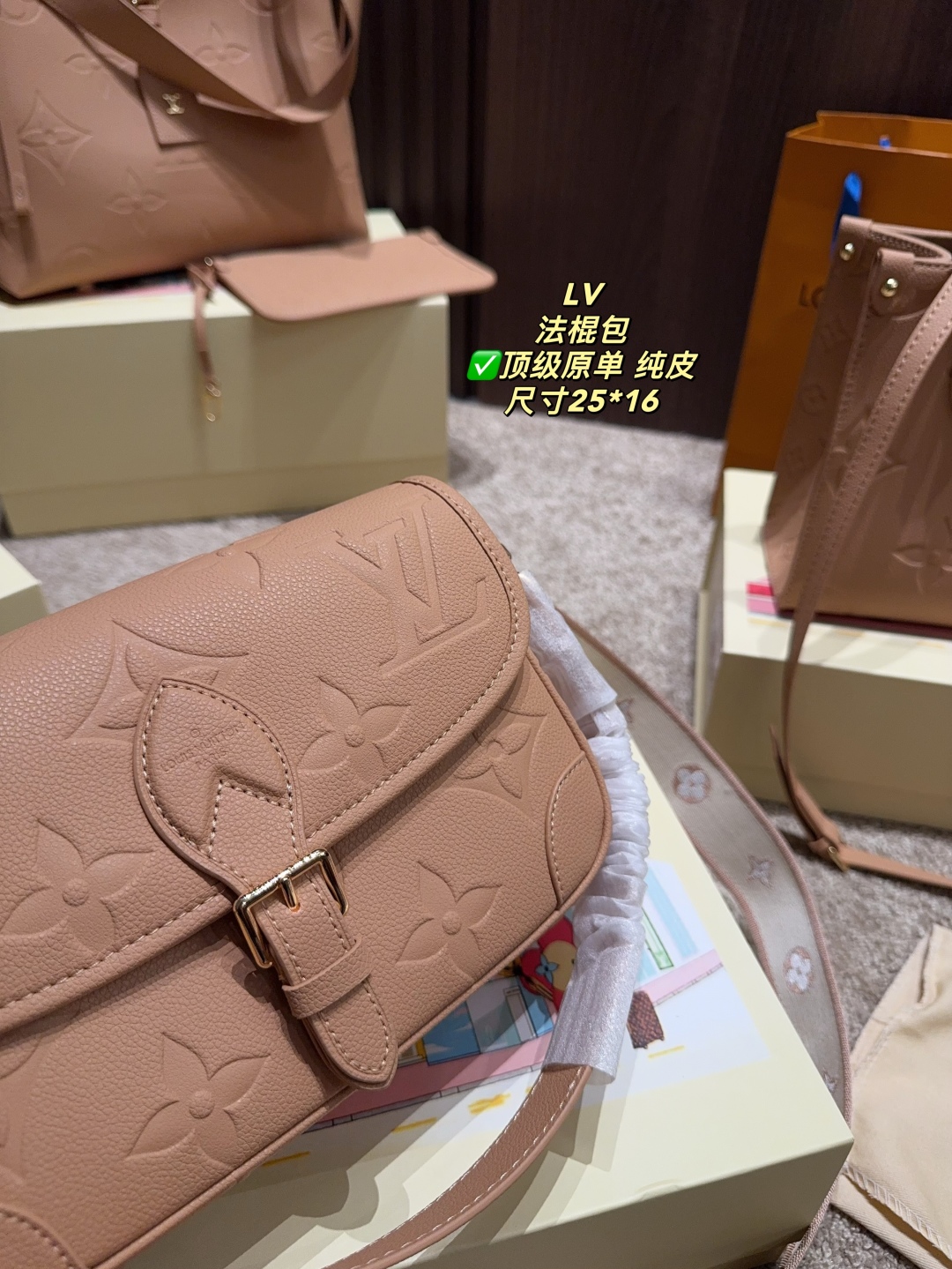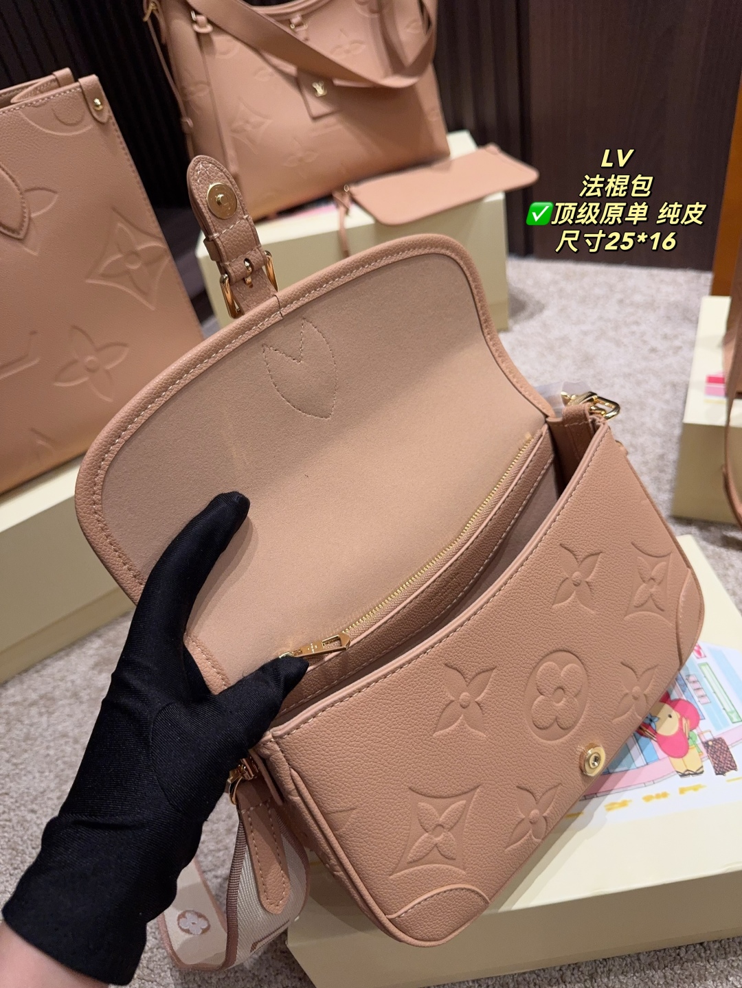 ✅Original high-quality pure leather with folding box⚠️Size 25.16cm Louis Vuitton lv baguette bag